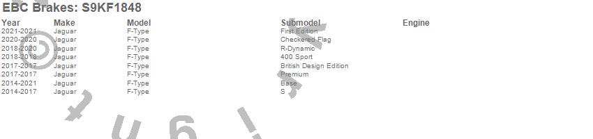 Below is an abbreviated list of applications for the S9 Kits Yellowstuff and USR Rotors.