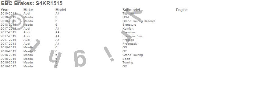 Below is an abbreviated list of applications for the S4 Kits Redstuff and USR Rotor.
