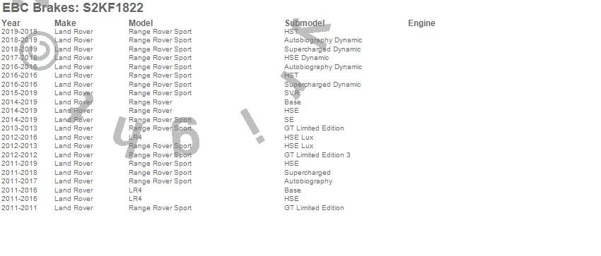 Below is an abbreviated list of applications for the S2 Kits Greenstuff 6000 and USR Rotors.