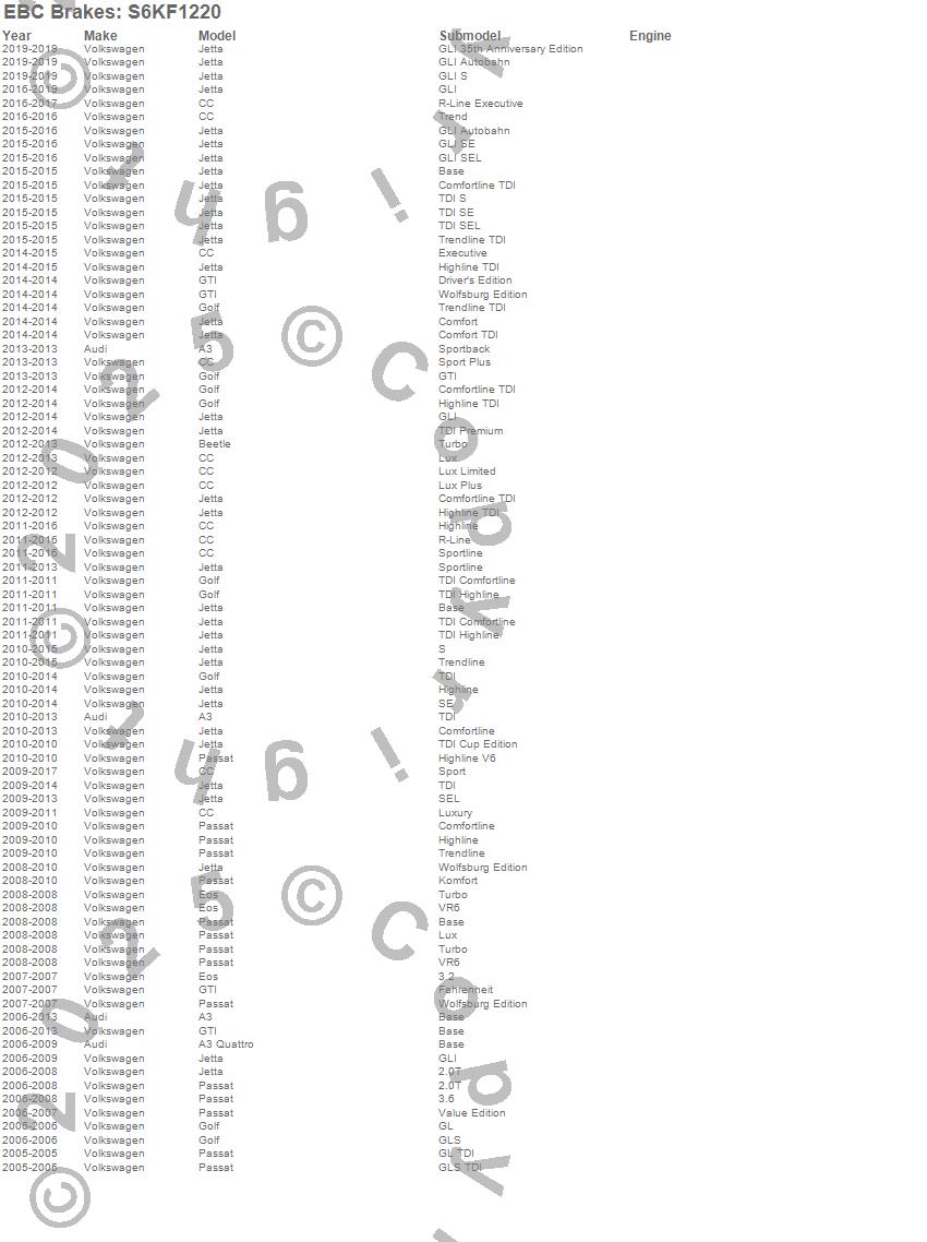 Below is an abbreviated list of applications for the S6 Kits Bluestuff and GD Rotors.