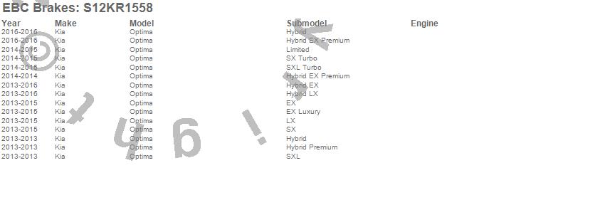 Below is an abbreviated list of applications for the S12 Kits Redstuff and RK Rotors.