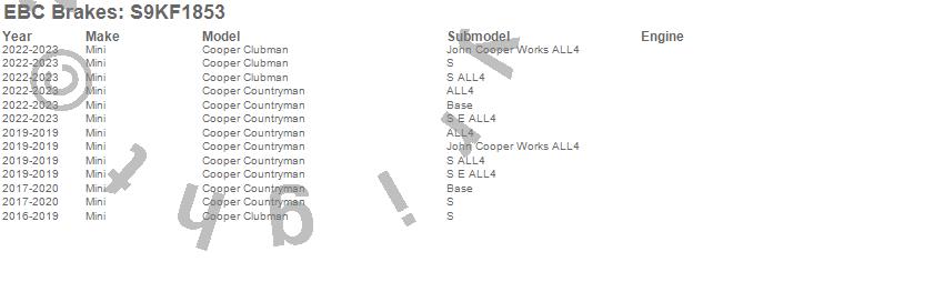 Below is an abbreviated list of applications for the S9 Kits Yellowstuff and USR Rotors.
