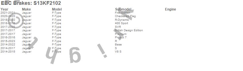 Below is an abbreviated list of applications for the S13 Kits Yellowstuff and RK Rotors.