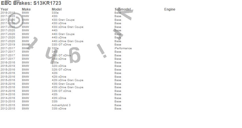 Below is an abbreviated list of applications for the S13 Kits Yellowstuff and RK Rotors.