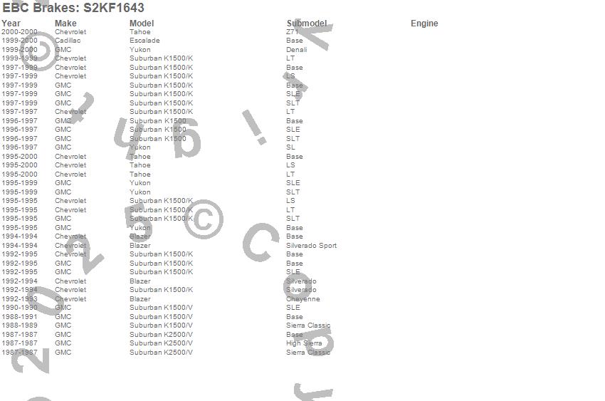 Below is an abbreviated list of applications for the S2 Kits Greenstuff 6000 and USR Rotors.