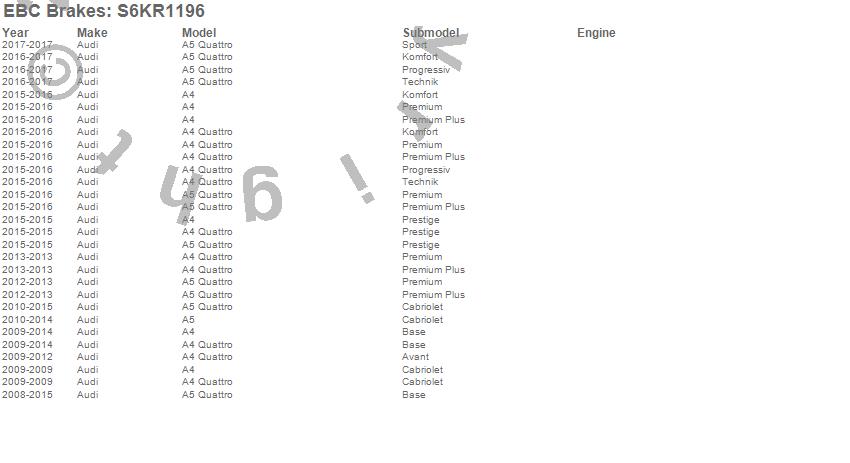 Below is an abbreviated list of applications for the S6 Kits Bluestuff and GD Rotors.