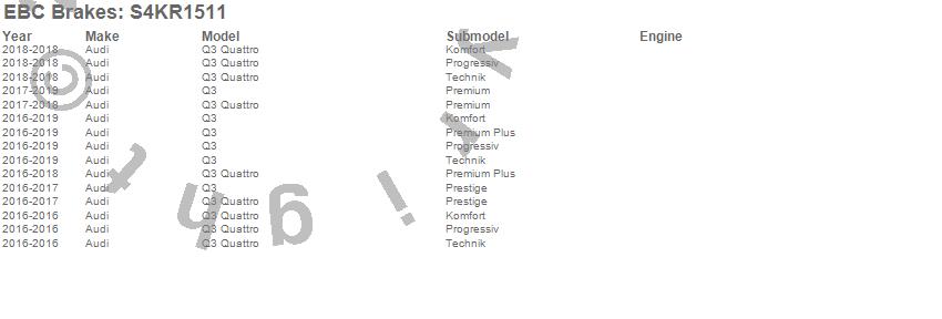 Below is an abbreviated list of applications for the S4 Kits Redstuff and USR Rotor.