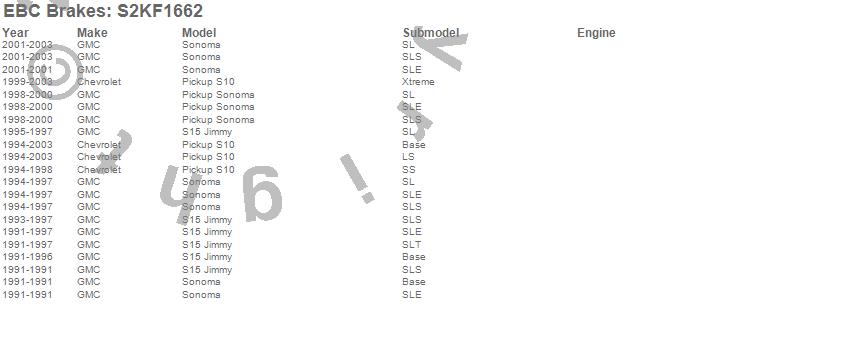 Below is an abbreviated list of applications for the S2 Kits Greenstuff 6000 and USR Rotors.