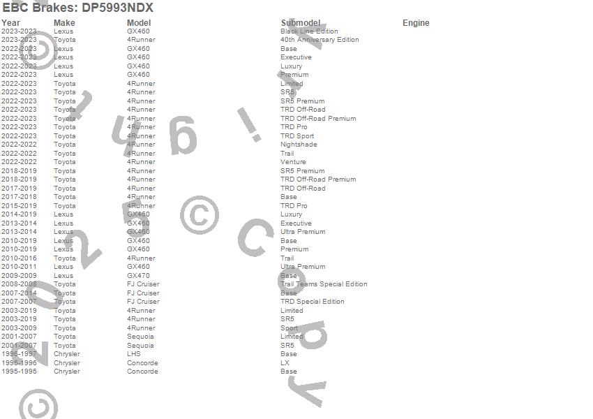 4Runner, Concorde, FJ Cruiser, GX460, GX470, LHS, Sequoia, Chrysler, Lexus, Toyota, 2023, 2022, 2019, 2018, 2017, 2016, 2015, 2014, 2013, 2012