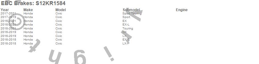 Below is an abbreviated list of applications for the S12 Kits Redstuff and RK Rotors.