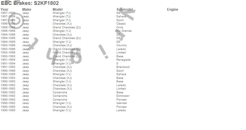 Cherokee (XJ), Comanche, Grand Cherokee (ZJ), Wrangler (TJ), Wrangler (YJ), Jeep, 1999, 1998, 1997, 1996, 1995, 1994, 1993, 1992, 1991, 1990