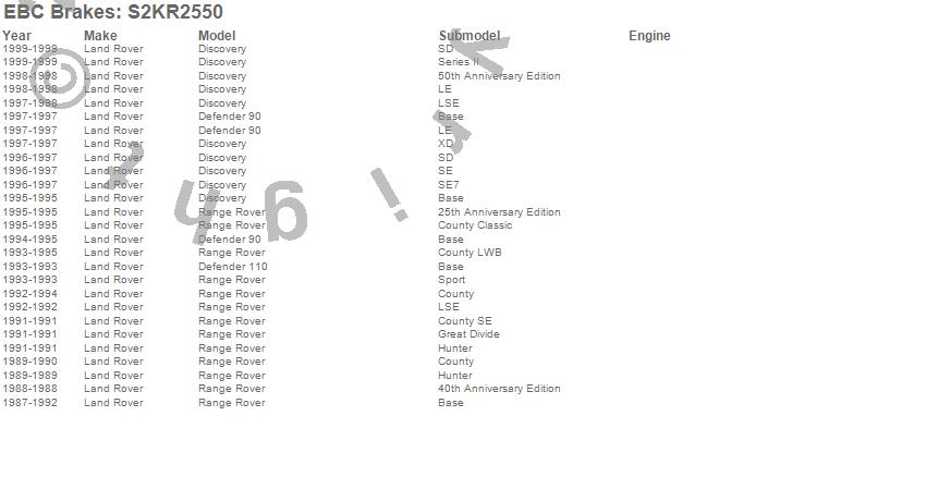 Defender 110, Defender 90, Discovery, Range Rover, Land Rover, 1999, 1998, 1997, 1996, 1995, 1994, 1993, 1992, 1991, 1990, 1989, 1988, 1987