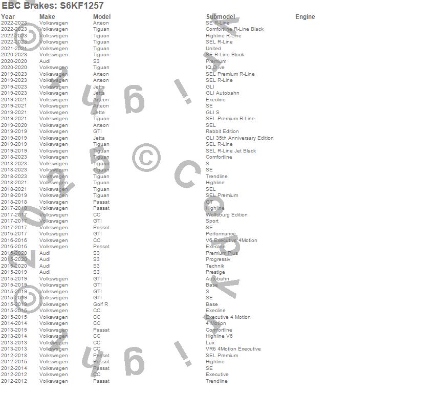 Below is an abbreviated list of applications for the S6 Kits Bluestuff and GD Rotors.