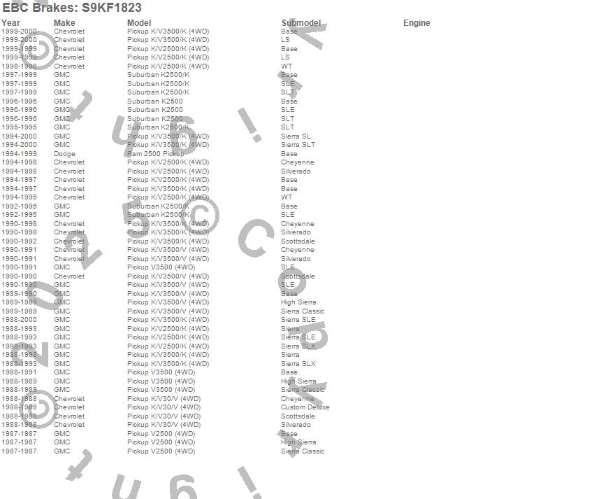 Below is an abbreviated list of applications for the S9 Kits Yellowstuff and USR Rotors.