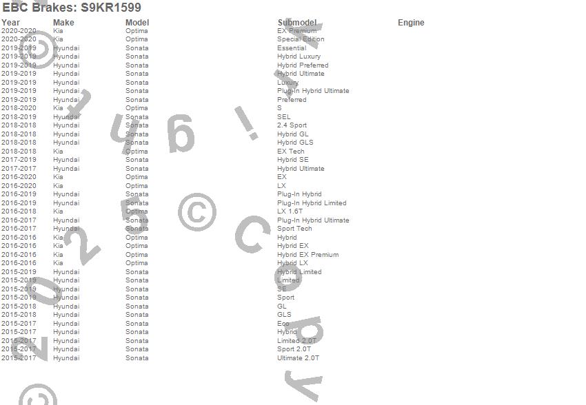 Below is an abbreviated list of applications for the S9 Kits Yellowstuff and USR Rotors.