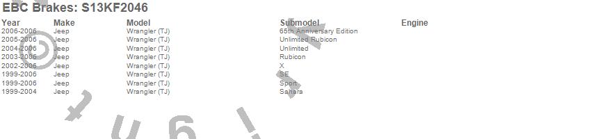 Below is an abbreviated list of applications for the S13 Kits Yellowstuff and RK Rotors.