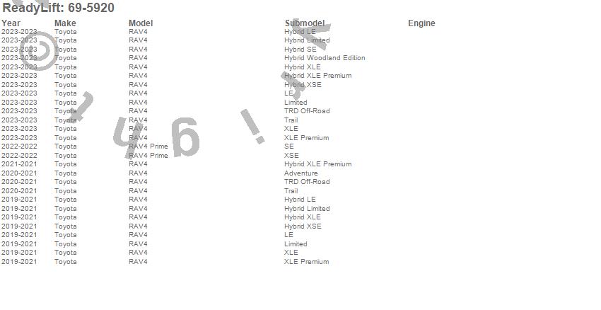 ReadyLift - SST Lift Kit P/N 69-5920 Features: