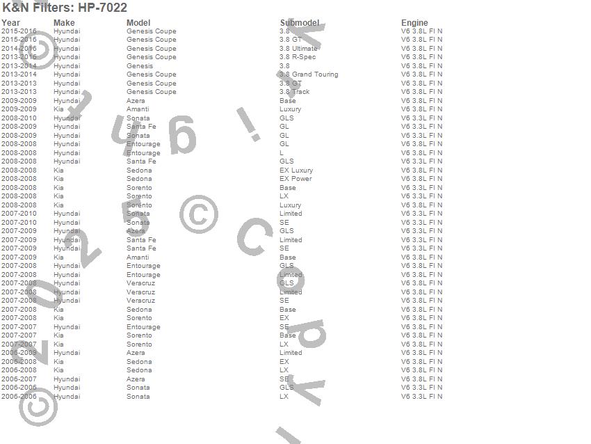 Amanti, Azera, Entourage, Genesis, Genesis Coupe, Santa Fe, Sedona, Sonata, Sorento, Veracruz, Hyundai, Kia, 2016, 2015, 2014, 2013, 2010, 2009, 2008, 2007