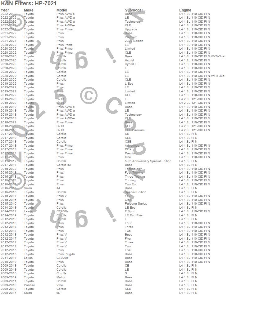 C-HR, Corolla, Corolla iM, CT200h, iM, Matrix, Prius, Prius AWD-e, Prius Plug-In, Prius Prime, Prius V, Vibe, xD, Lexus, Pontiac, Scion, Toyota, 2022, 2021, 2020