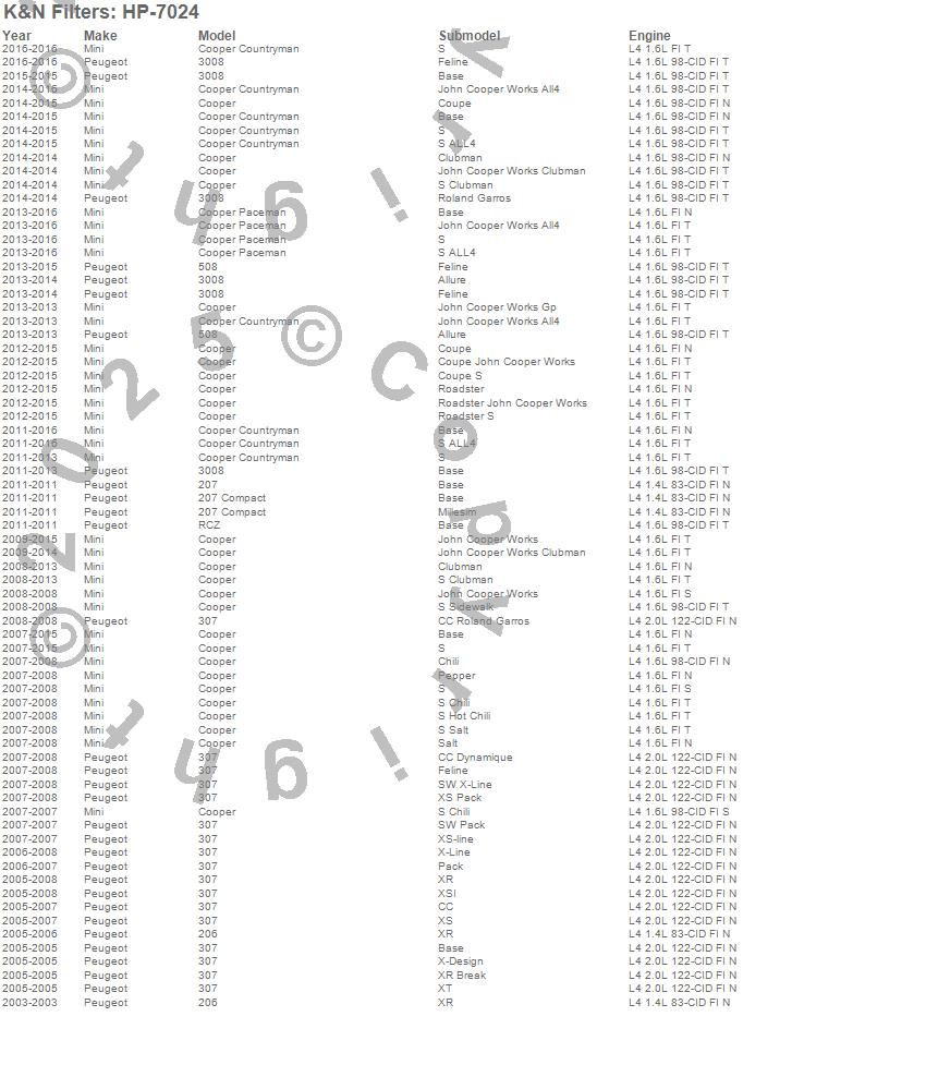 206, 207, 207 Compact, 3008, 307, 508, Cooper, Cooper Countryman, Cooper Paceman, RCZ, Mini, Peugeot, 2016, 2015, 2014, 2013, 2012, 2011, 2010, 2009