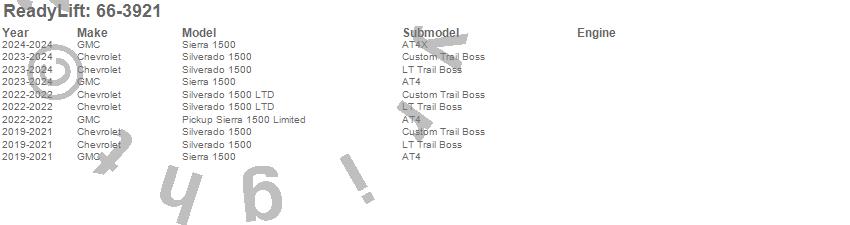 ReadyLift - Leveling Kit P/N 66-3921 Features: