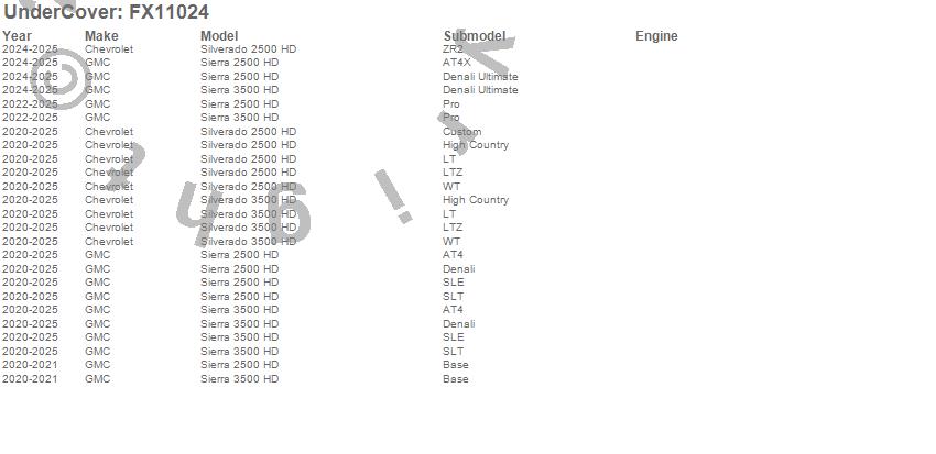 Below is an abbreviated list of applications for the FLEX Tonneau Cover.