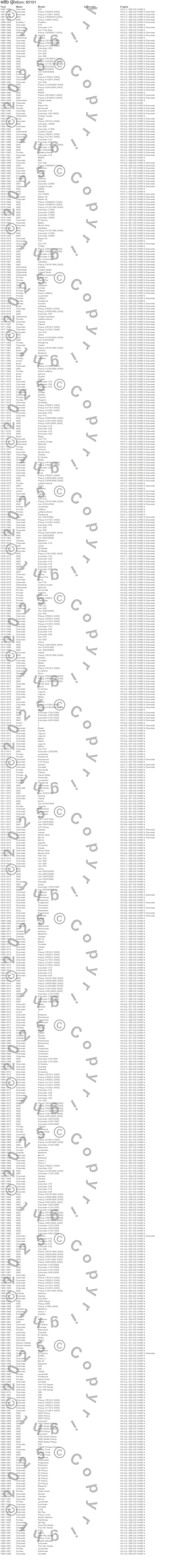 Below is an abbreviated list of applications for the MSD Front Drive Distributor.