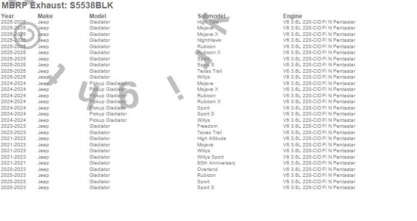 Below is an abbreviated list of applications for the Armor BLK Cat Back Exhaust System.