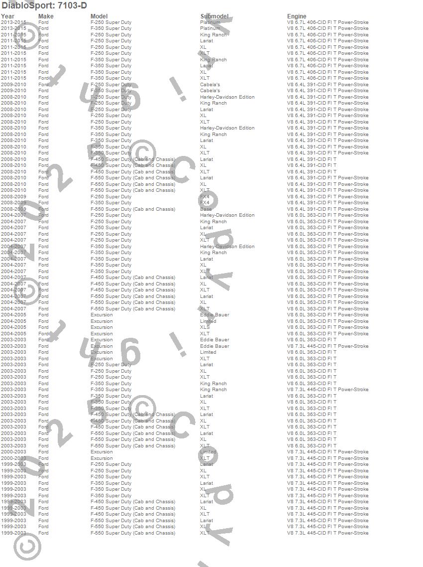 Below is an abbreviated list of applications for the Predator P2 Performance Tuner.