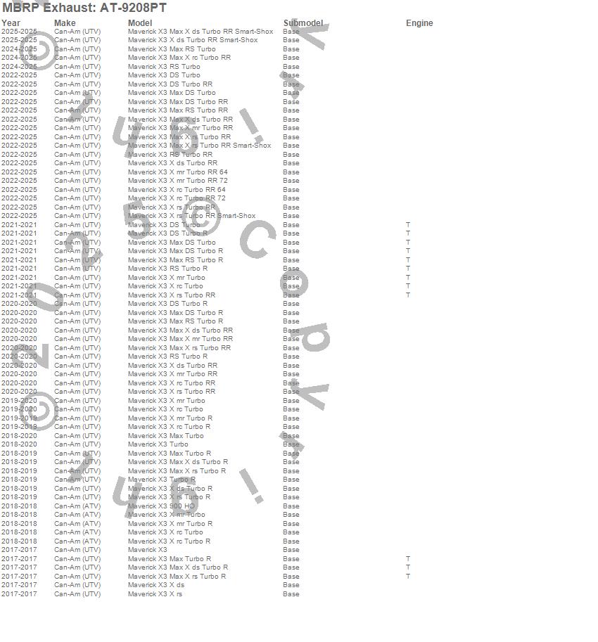 Maverick X3, Maverick X3 900 HO, Maverick X3 DS Turbo, Maverick X3 DS Turbo R, Maverick X3 DS Turbo RR, Maverick X3 Max DS Turbo, Maverick X3 Max DS Turbo R, Maverick X3 Max DS Turbo RR, Maverick X3 Max RS Turbo, Maverick X3 Max RS Turbo R, Maverick X3 Max RS Turbo RR, Maverick X3 Max Turbo, Maverick X3 Max Turbo R, Maverick X3 Max X ds Turbo R, Maverick X3 Max X ds Turbo RR, Maverick X3 Max X ds Turbo RR Smart-Shox, Maverick X3 Max X mr Turbo RR, Maverick X3 Max X rc Turbo RR, Maverick X3 Max X rs Turbo R, Maverick X3 Max X rs Turbo RR