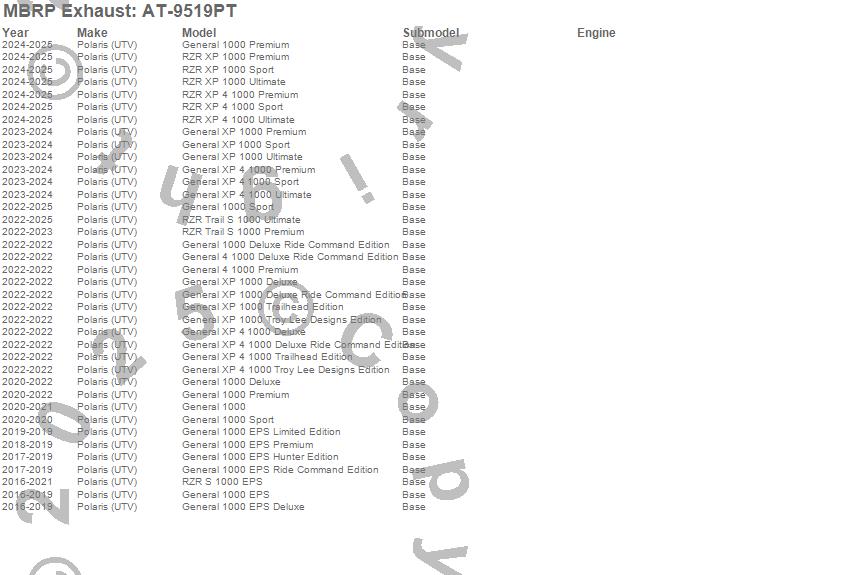 Below is an abbreviated list of applications for the ATV Exhaust System With Performance Muffler.