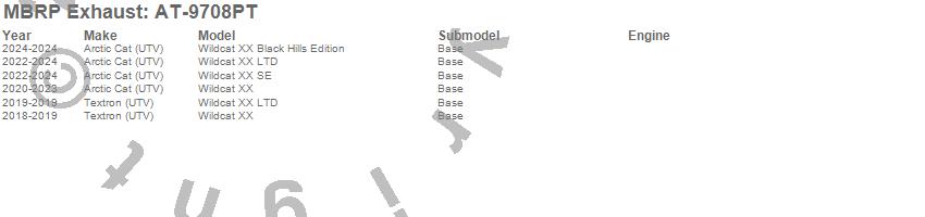 Wildcat XX, Wildcat XX Black Hills Edition, Wildcat XX LTD, Wildcat XX SE, Arctic Cat (UTV), Textron (UTV), 2024, 2023, 2022, 2021, 2020, 2019, 2018
