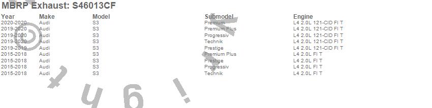 Below is an abbreviated list of applications for the Armor Pro Cat Back Exhaust System.