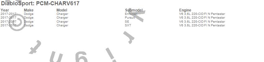 DiabloSport - Modified PCM P/N PCM-CHARV617 Features: