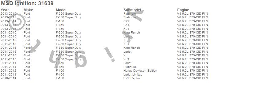 Below is an abbreviated list of applications for the 8.5mm Super Conductor Wire Set.