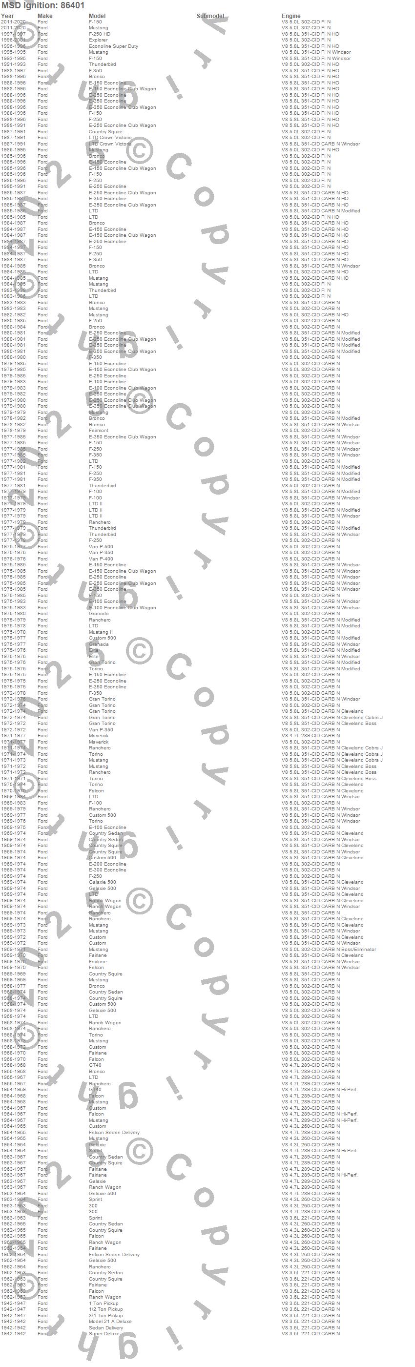1 Ton Pickup, 1/2 Ton Pickup, 3/4 Ton Pickup, 300, Bronco, Country Sedan, Country Squire, Custom, Custom 500, E-100 Econoline, E-100 Econoline Club Wagon, E-150 Econoline, E-150 Econoline Club Wagon, E-200 Econoline, E-250 Econoline, E-250 Econoline Club Wagon, E-300 Econoline, E-350 Econoline, E-350 Econoline Club Wagon, Econoline Super Duty