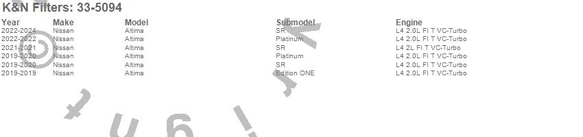 Below is an abbreviated list of applications for the Air Filter.