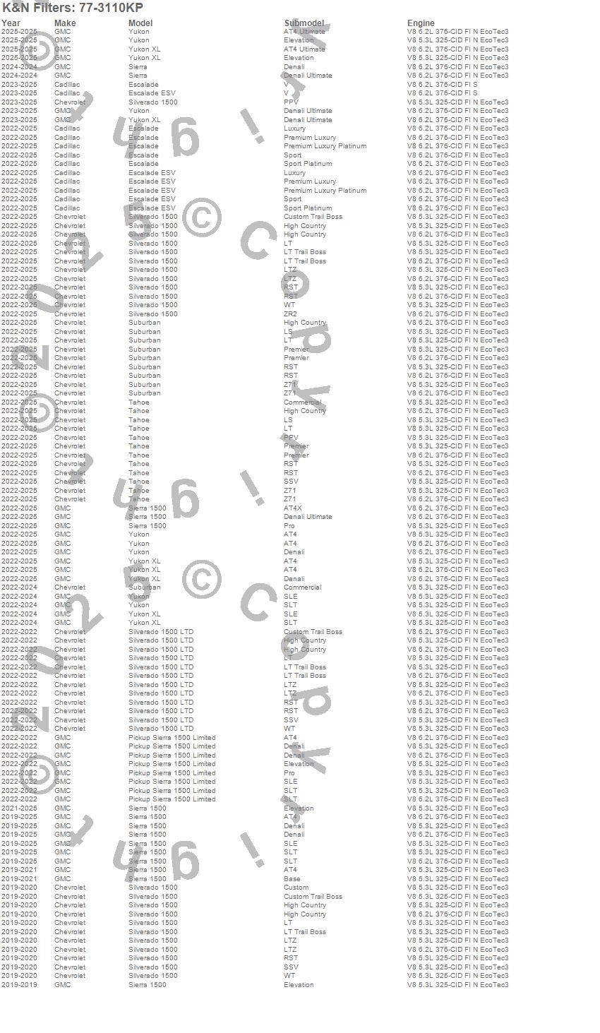 Below is an abbreviated list of applications for the 77 Series Kit Air System.