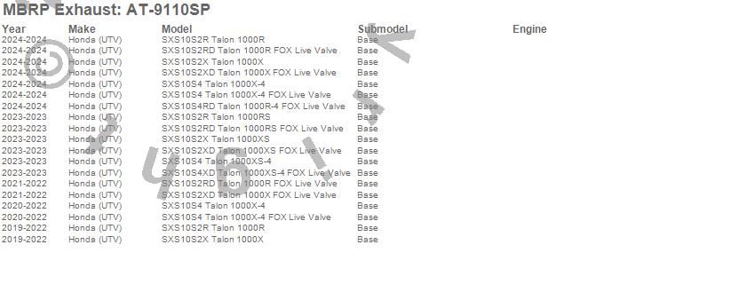 SXS10S2R Talon 1000R, SXS10S2R Talon 1000RS, SXS10S2RD Talon 1000R FOX Live Valve, SXS10S2RD Talon 1000RS FOX Live Valve, SXS10S2X Talon 1000X, SXS10S2X Talon 1000XS, SXS10S2XD Talon 1000X FOX Live Valve, SXS10S2XD Talon 1000XS FOX Live Valve, SXS10S4 Talon 1000X-4, SXS10S4 Talon 1000X-4 FOX Live Valve, SXS10S4 Talon 1000XS-4, SXS10S4RD Talon 1000R-4 FOX Live Valve, SXS10S4XD Talon 1000XS-4 FOX Live Valve, Honda (UTV), 2025, 2024, 2023, 2022, 2021, 2020