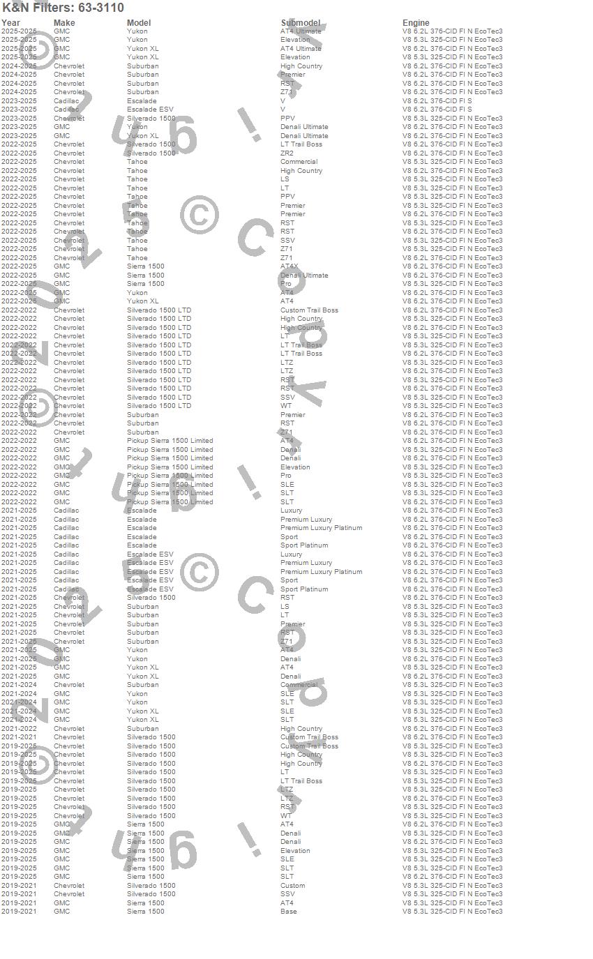 Escalade, Escalade ESV, Pickup Sierra 1500 Limited, Sierra 1500, Silverado 1500, Silverado 1500 LTD, Suburban, Tahoe, Yukon, Yukon XL, Cadillac, Chevrolet, GMC, 2026, 2025, 2024, 2023, 2022, 2021, 2020