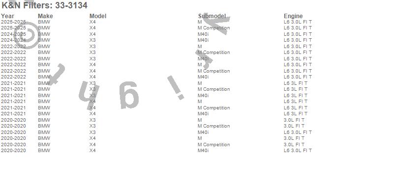 Below is an abbreviated list of applications for the Air Filter.