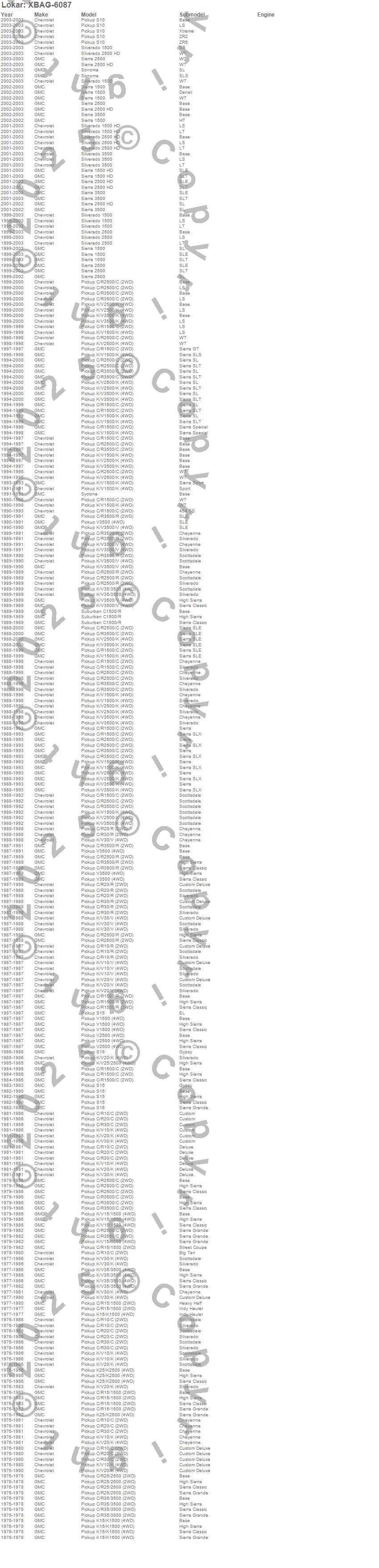 C10 Pickup, C1500 Pickup, C20 Pickup, C25/C2500 Pickup, C2500 Pickup, C30 Pickup, C35/C3500 Pickup, C3500 Pickup, K10 Pickup, K1500, K1500 Pickup, K20 Pickup, K25 Pickup, K2500 Pickup, K30 Pickup, K35 Pickup, K3500 Pickup, R10 Pickup, R1500 Pickup, R20 Pickup