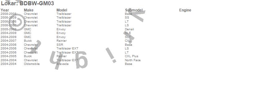 Bravada, Envoy, Rainier, SSR, Trailblazer, Trailblazer EXT, Buick, Chevrolet, GMC, Oldsmobile, 2009, 2008, 2007, 2006, 2005, 2004