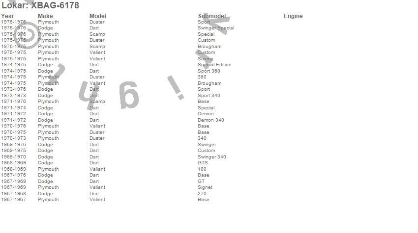 Dart, Duster, Scamp, Valiant, Dodge, Plymouth, 1976, 1975, 1974, 1973, 1972, 1971, 1970, 1969, 1968, 1967