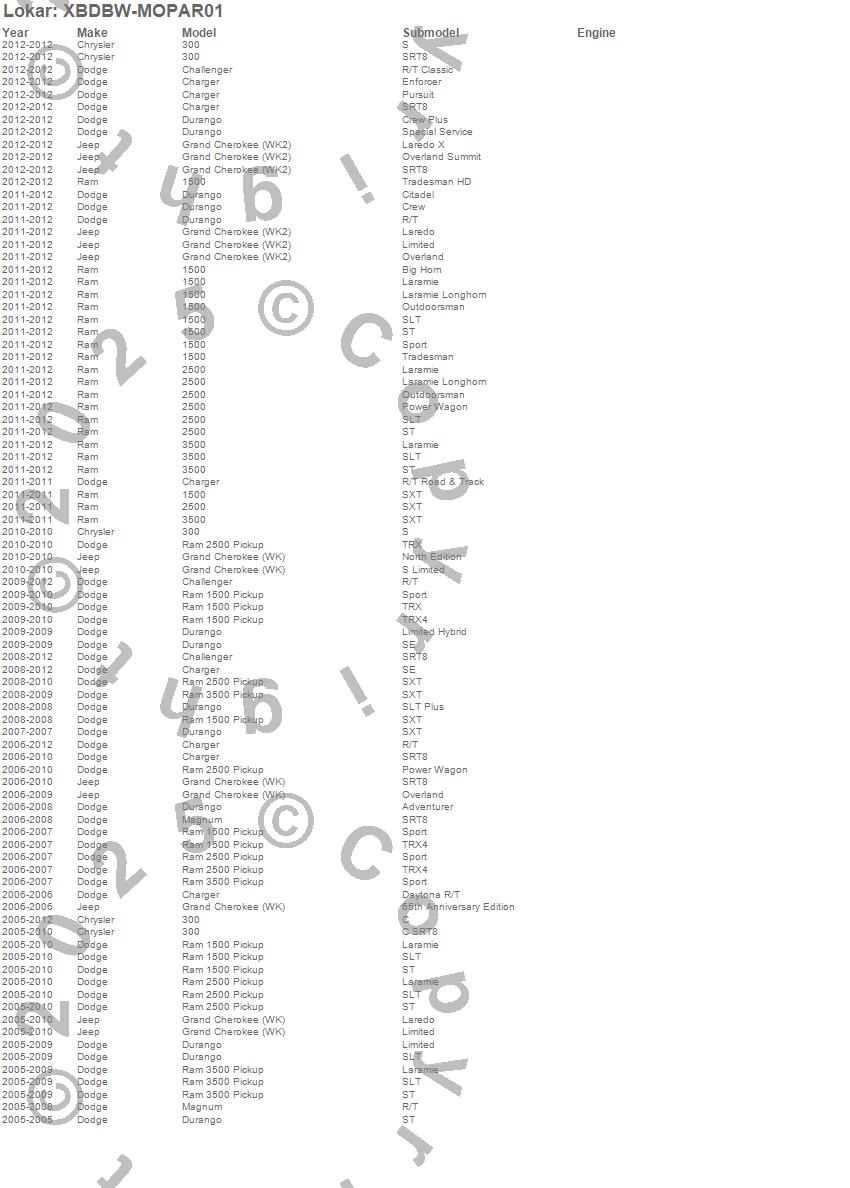 1500, 2500, 300, 3500, Challenger, Charger, Durango, Grand Cherokee (WK), Grand Cherokee (WK2), Magnum, Ram 1500, Ram 2500, Ram 3500, Chrysler, Dodge, Jeep, Ram, 2012, 2011, 2010