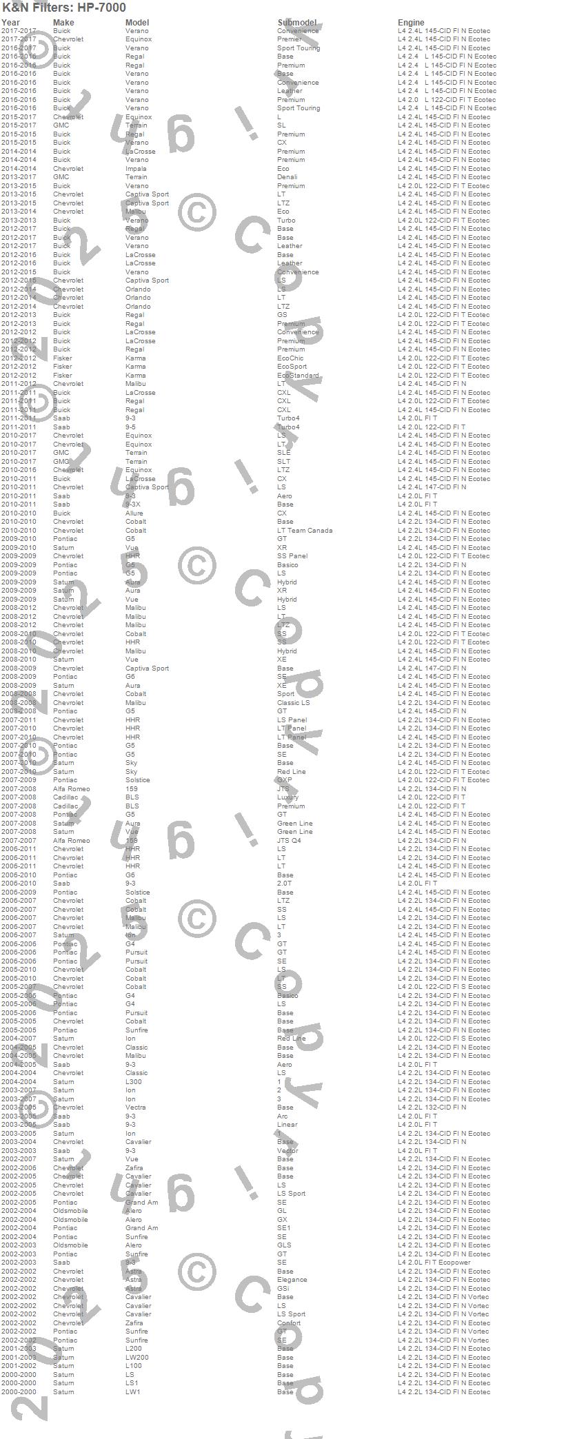 159, 9-3, 9-3X, 9-5, Alero, Allure, Astra, Aura, BLS, Captiva Sport, Cavalier, Classic, Cobalt, Equinox, G4, G5, G6, Grand Am, HHR, Impala