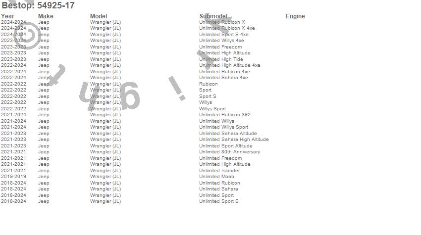 Below is an abbreviated list of applications for the Trektop Ultra Slantback Soft Top.