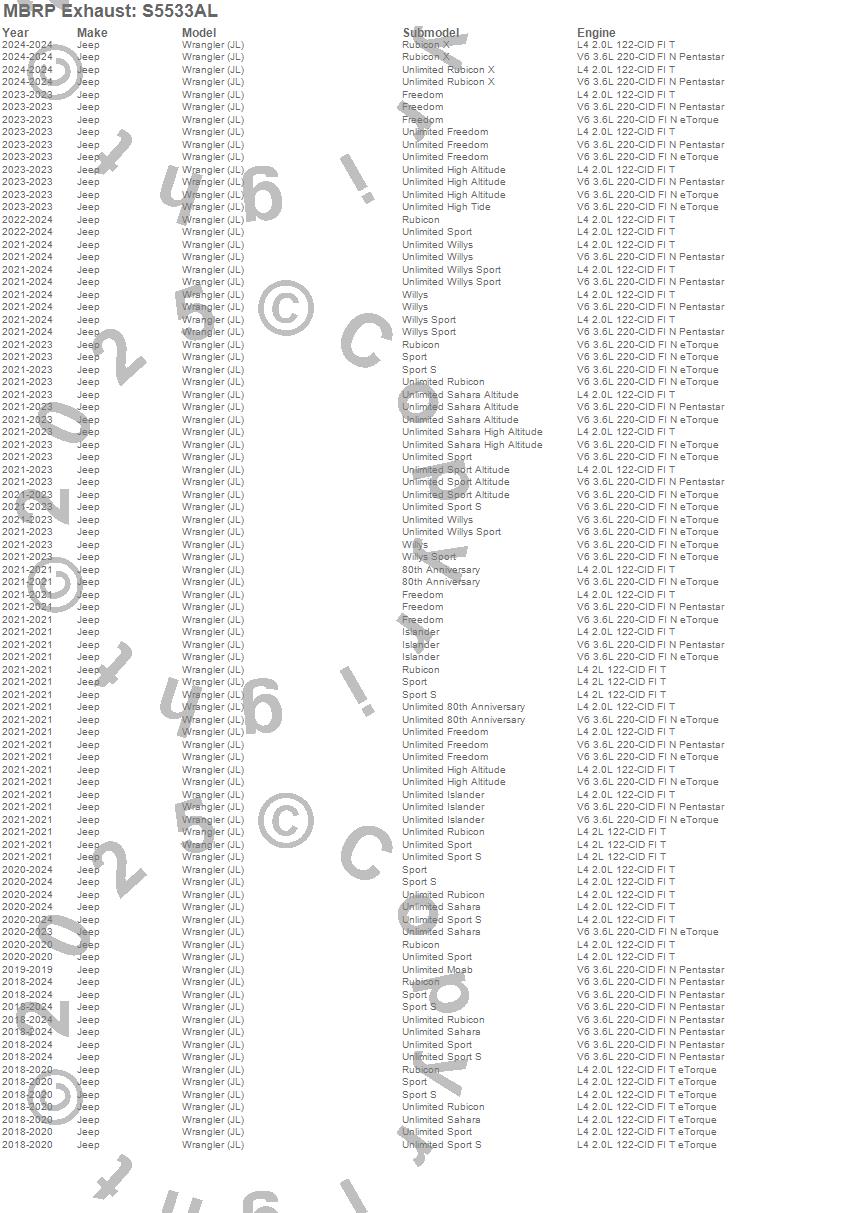 Below is an abbreviated list of applications for the Armor Lite Cat Back Exhaust System.