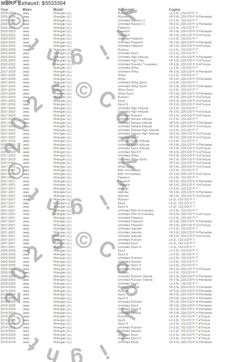 Below is an abbreviated list of applications for the Armor Pro Cat Back Exhaust System.