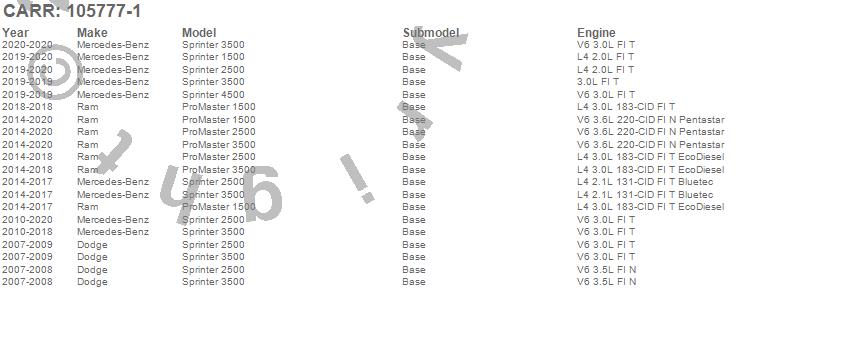 ProMaster 1500, ProMaster 2500, ProMaster 3500, Sprinter 1500, Sprinter 2500, Sprinter 3500, Sprinter 4500, Dodge, Mercedes-Benz, Ram, 2020, 2019, 2018, 2017, 2016, 2015, 2014, 2013, 2012, 2011